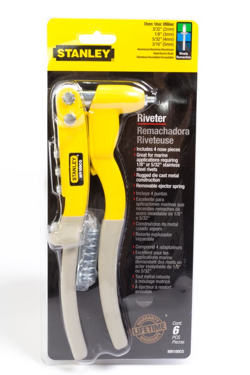 El mango largo hace remachadora fácil de apretar. Construcción robusta, contratista de grado de fundición a presión de metal para una larga vida. Diseñado para remaches de acero inoxidable en aplicaciones marinas. Equipado con muelle expulsor extraíble4 Bocas: 1/8 pg, 3/32pg, 5/32 pgy 3/16pg de diámetro y remaches de acero de aluminio. Usa 1/8 pgy 5/32pg remaches de acero inoxidable de diámetro