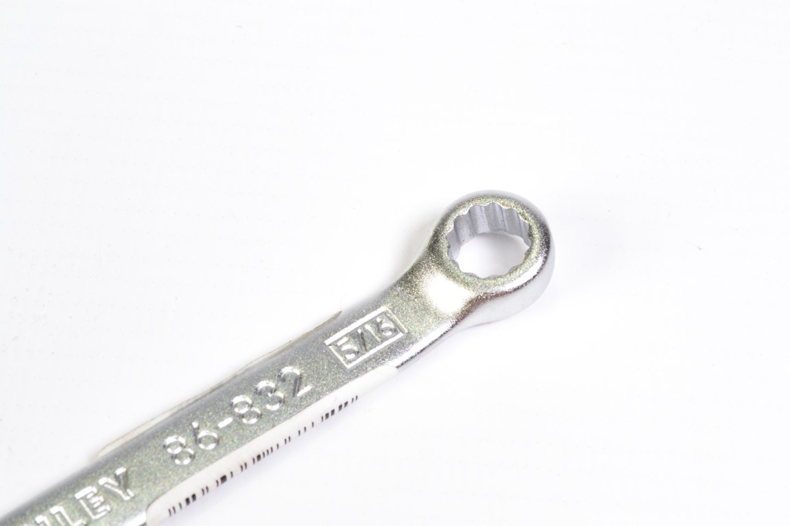 4-86-832. 5/16 pulgadas. Las llaves combinadas Stanley están hechas para sobrepasar largamente las normas industriales ANSI. Su extremo abierto está orientado a 15º para lograr ajustes rápidos. Mientras que su extremo de corona de 12 puntas brinda un ángulo de recuperación de 30º y máxima seguridad para altos aprietes. Incorporan el sistema MaxiDrive™ de puntas redondeadas. ANSI B107.6.