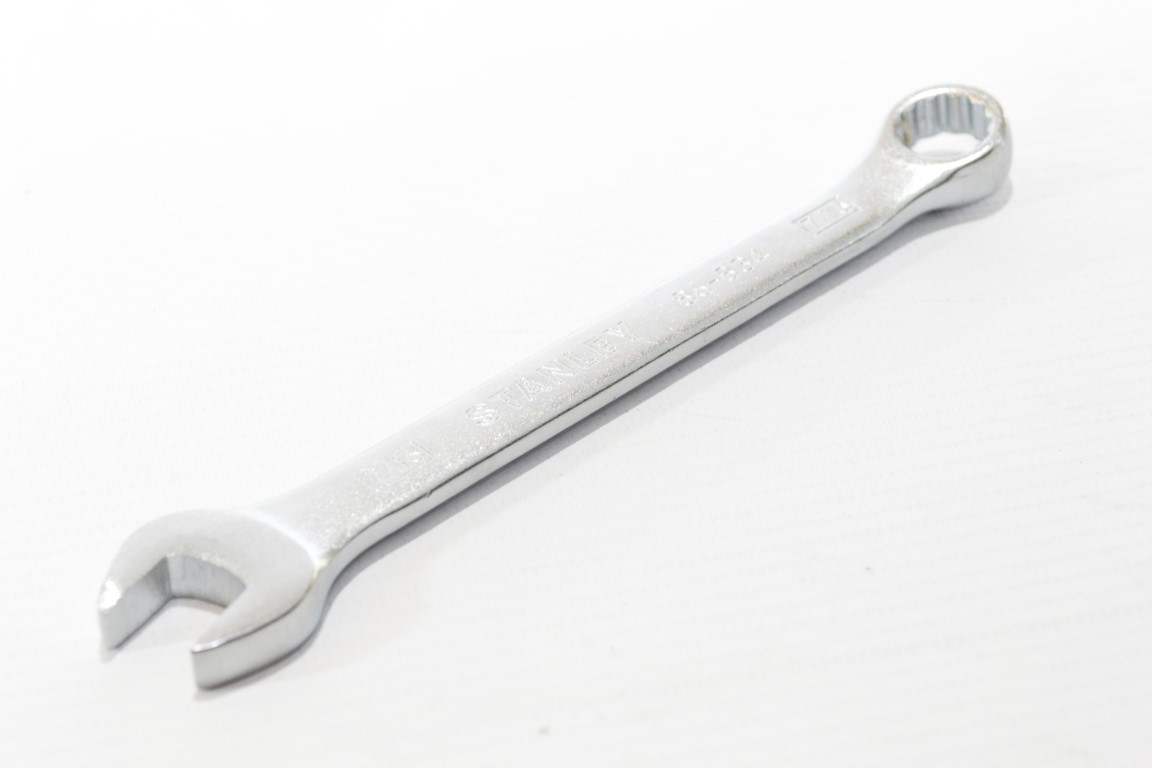 4-86-834. 7/16 pulgadas. Las llaves combinadas Stanley están hechas para sobrepasar largamente las normas industriales ANSI. Su extremo abierto está orientado a 15º para lograr ajustes rápidos. Mientras que su extremo de corona de 12 puntas brinda un ángulo de recuperación de 30º y máxima seguridad para altos aprietes. Incorporan el sistema MaxiDrive™ de puntas redondeadas. ANSI B107.6.