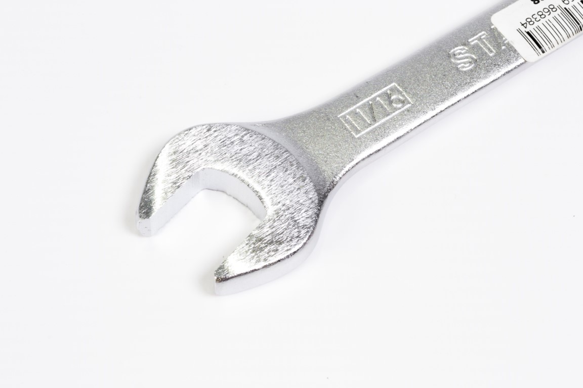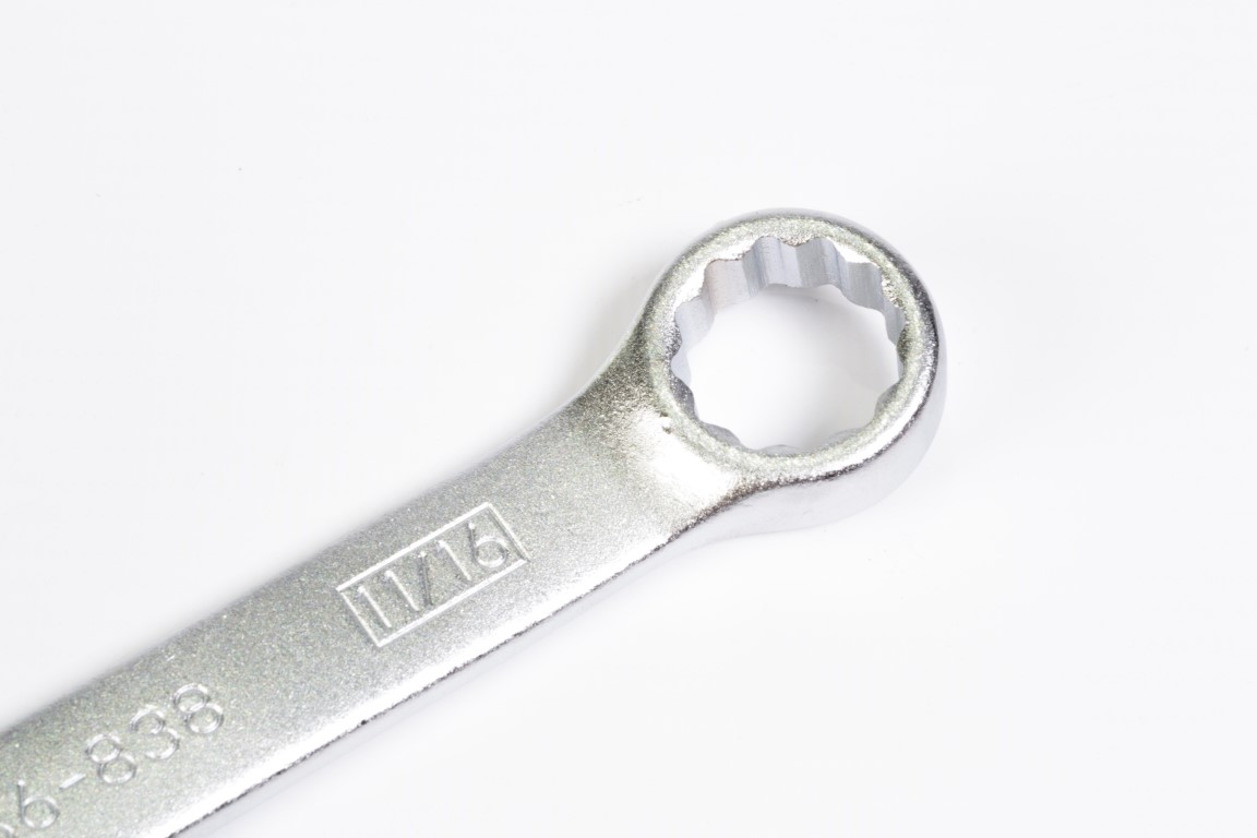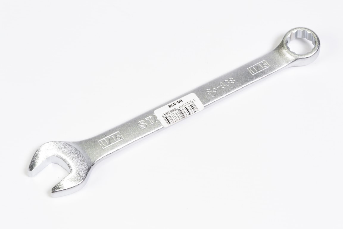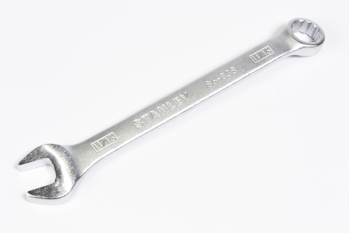 4-86-838. 11/16 pulgadas. Las llaves combinadas Stanley están hechas para sobrepasar largamente las normas industriales ANSI. Su extremo abierto está orientado a 15º para lograr ajustes rápidos. Mientras que su extremo de corona de 12 puntas brinda un ángulo de recuperación de 30º y máxima seguridad para altos aprietes. Incorporan el sistema MaxiDrive™ de puntas redondeadas. ANSI B107.6.