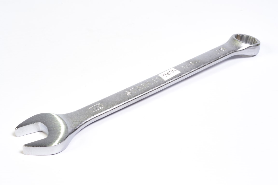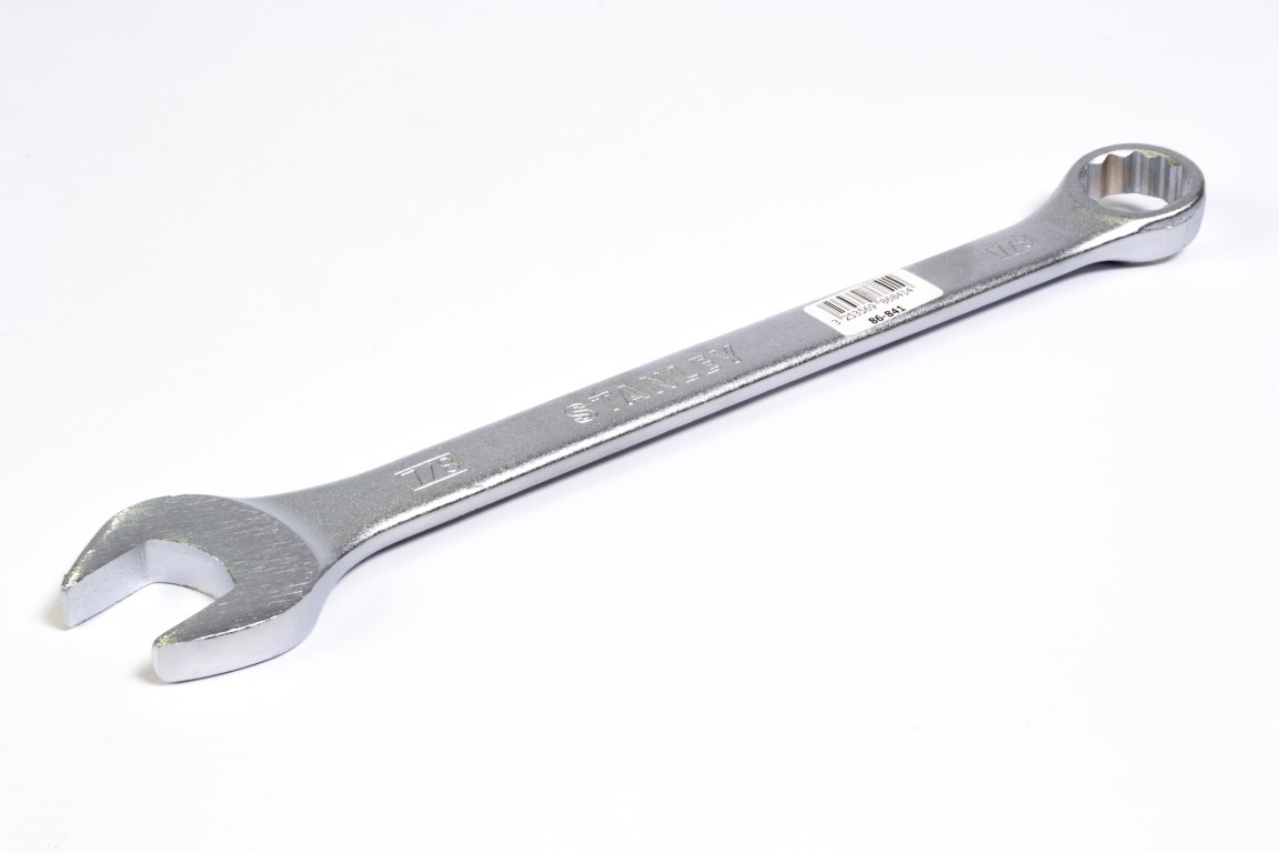 7/8 pulgadas. Las llaves combinadas Stanley están hechas para sobrepasar largamente las normas industriales ANSI. Su extremo abierto está orientado a 15º para lograr ajustes rápidos. Mientras que su extremo de corona de 12 puntas brinda un ángulo de recuperación de 30º y máxima seguridad para altos aprietes. Incorporan el sistema MaxiDrive™ de puntas redondeadas. ANSI B107.6.