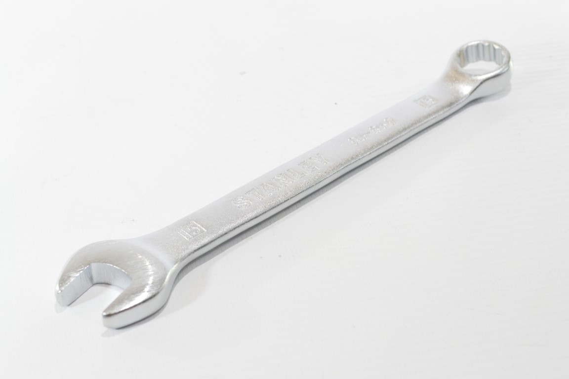Las llaves combinadas Stanley están hechas para sobrepasar largamente las normas industriales ANSI. Su extremo abierto está orientado a 15º para lograr ajustes rápidos. Mientras que su extremo de corona de 12 puntas brinda un ángulo de recuperación de 30º y máxima seguridad para altos aprietes. Incorporan el sistema MaxiDrive™ de puntas redondeadas. ANSI B107.6.