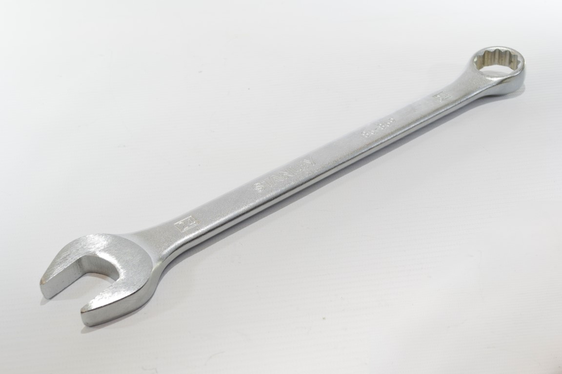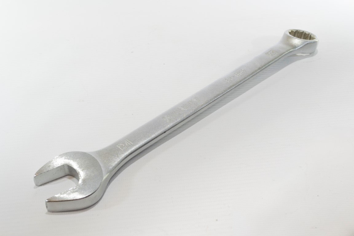24 mm Apertura. La llave combinada está hecha para sobrepasar las normas industriales ANSI, su extremo está orientado a 15 grados para lograr ajustes rápidos mientras que su extremo de corona de 12 puntos brinda un ángulo de recuperación de 30 grados y máxima seguridad para altos aprietes, incorpora el sistema Maxi Drive de puntas redondeadas, está cromada para facilitar la limpieza y evitar la corrosión.