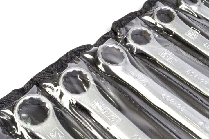 11 Piezas · Contenido · 3/8, 7/16, 1/2, 9/16, 5/8, 11/16, 3/4, 13/16, 7/8, 15/16 & 1 pul Apertura. Estuche de Lona.
