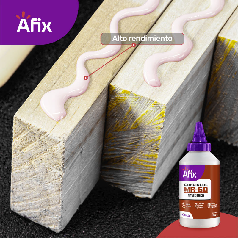 Adhesivo de envase plástico con dosificador elaborado a base de PVA (acetato de poli vinílico), para la industria de la carpintería y madera. Utilizado en maderas con un porcentaje de humedad y es de secado rápido.