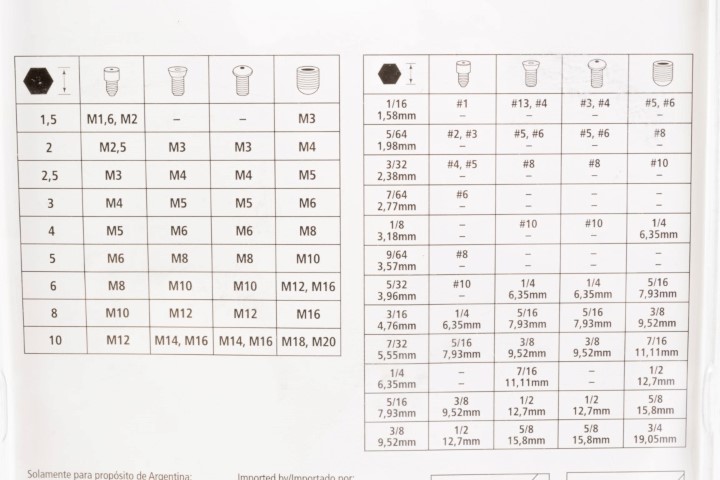 21 Piezas · Contenido · (9) 1.5, 2.0, 2.5, 3.0, 4.0, 5.0, 6.0, 8.0 & 10.0 mm Tamaños · (12) 1/16, 5/64, 3/32, 7/64, 1/8, 9/64, 5/32, 3/16, 7/32, 1/4, 5/16, 3/8 pul Tamaños