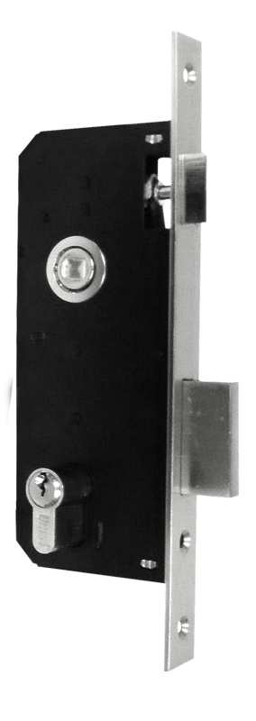 Cerradura de incrustar para puertas batientes, diseñada para ofrecer seguridad y funcionalidad. Cuenta con picaporte reversible de resbalón ajustable y un resistente macho rectangular, ideal para una instalación confiable. Fabricada en acero con acabado inoxidable para mayor durabilidad y resistencia a la corrosión. Posee un cilindro doble de 60 mm tipo pera, con una distancia entre centros de 85 mm y un backset de 45, 35 y 20 mm. Incluye recibidor y tres llaves en latón con acabado niquelado. Incluye escudos del cilindro.