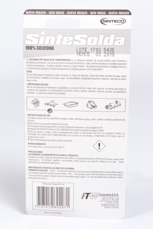 Es una silicona de un solo componente que vulcaniza a temperatura ambiente, por acción de la humedad ambiente, con desprendimiento de ácido acético, generando un elastómero, de gran flexibilidad y resistencia mecánica, que se adhiere fuertemente a vidrio, metales, madera, cerámica, fundición, aluminio, aleaciones metálicas y algunos plásticos. La SILICONA ROJA FORM-A-GASKET tiene buena resistencia a la intemperie, vibración, humedad y temperaturas extremas.