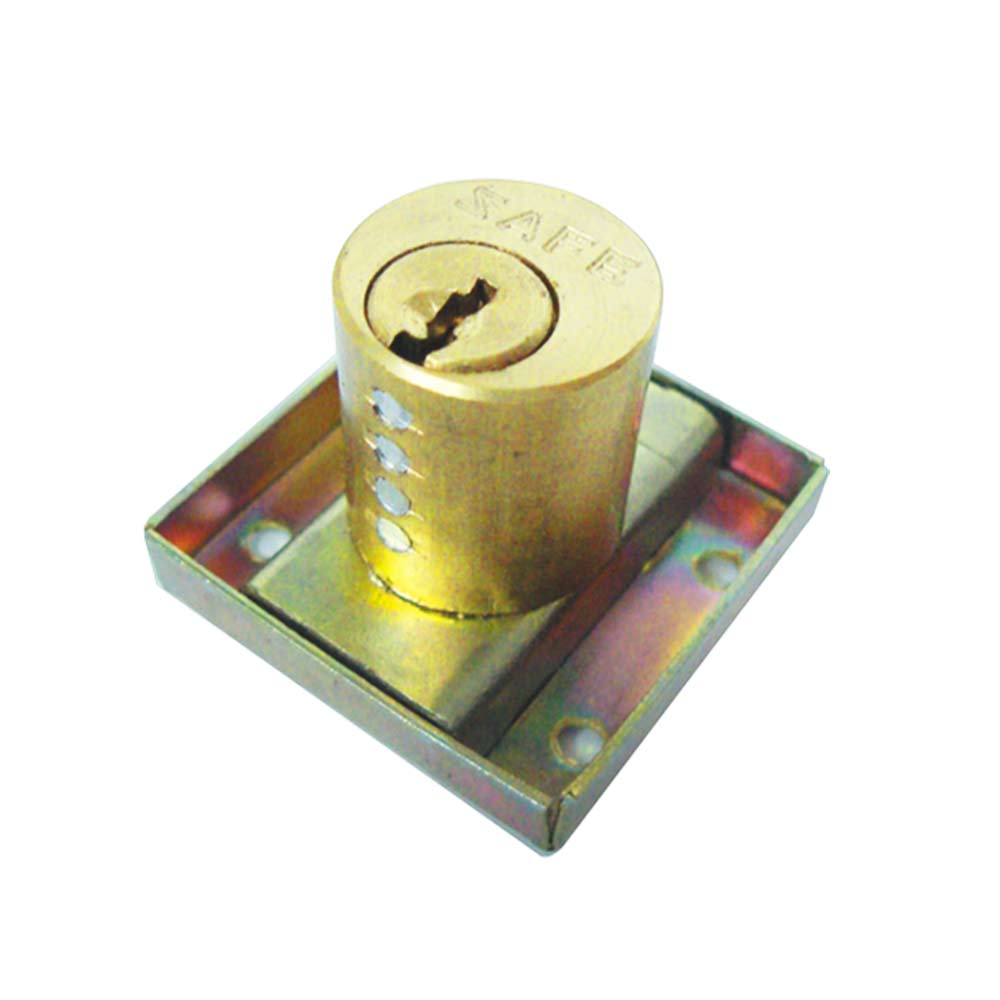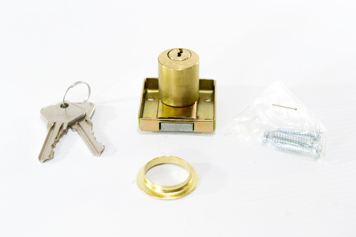 Cerradura 113/30 - 35 - 40, con diseño de sobreponer para muebles de madera principalmente. Acabado niquelado y cobre. Longitud de 30 mm. Cilindro en latón macizo de cuatro pines, porta cilindro niquelado o latón puro, pintado con laca transparente brillante y cuerpo en cold rolled con recubrimiento galvánico, homologación de llaves