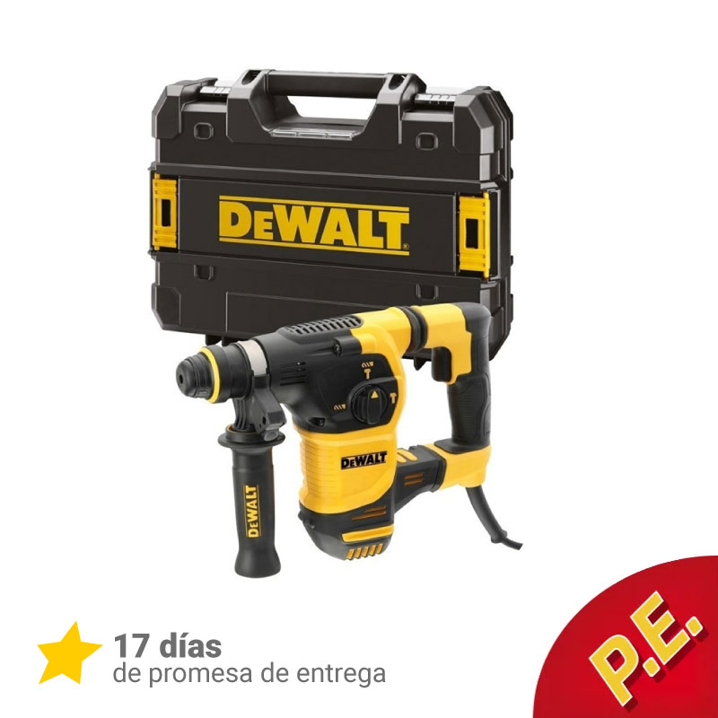Rotomartillo Sds Plus Dewalt D25333K-B3. Potencia 950 W. Sistema de encastre SDS Plus. Modos de operación Taladrar sin percusión, Taladrar con percusión, Percutor. Velocidad mínima de rotación 0 rpm y máxima 1150 rpm. Sistema anti-vibración. Energía de impacto: 3.4 Joules. Capacidad máxima de perforación en madera 13 mm. Capacidad máxima de perforación en hormigón 30 mm. Capacidad máxima de perforación en metal 30 mm.