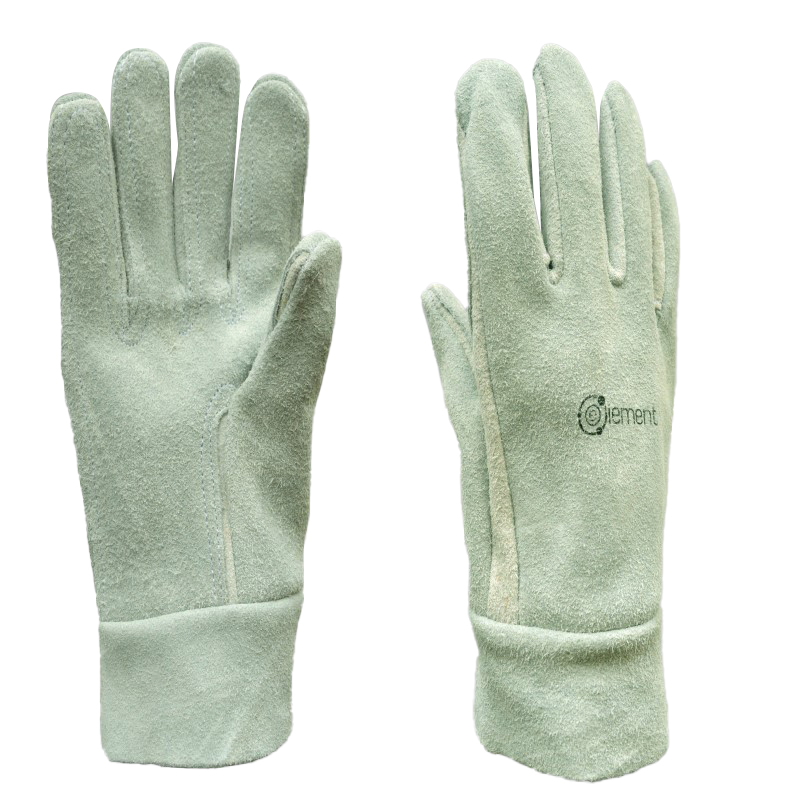 "Guante en carnaza de cuero vacuno, curtidaal cromo de 1,6 mm de espesor, con refuerzo en el mismo material en la palma de la mano y cinco dedos, con costuras dobles, largo 19"".Carnaza vacuno calidad AAA ."