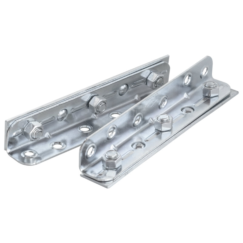 Grapa cama fabricada en lámina de acero cold rolled y hot rolled para unir y asegurar el cabezal con los largueros en camas de madera, tambien se utiliza para soportar cualquier pieza a 90°, sus tuercas permiten una máxima fijación, mayor ajuste y resistencia que las grapas tradicionales.