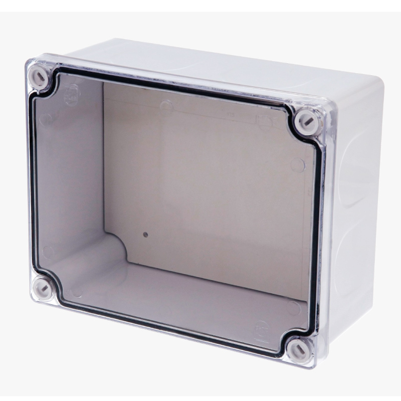 Caja Hermetica de Derivacion Doble Fondo Con Bandeja Porta Equipos y Tapa Transparente Policarbonato, Caja ABS libre de halogenos Color Blanco con filtro UV, Medidas 14x18x8cms, Grado IP65 Instalacion al Exterior, Con Empaque de Neopreno que Garantiza la Hermeticidad, Cierre y Apertura Rapida con Broches o Botones Imperdibles Con Ajuste de 1/4 de Vuelta, Unica Caja Hermetica del Mercado Con Bandeja Porta Equipos (Doble Fondo Para Fijacion de Todo Tipo de Elementos y Dispositivos de Seguridad, Iluminacion y Energia Solar. Contiene knock-outs laterales de 1/2" y 3/4" Instalacion de conector tipo prensa estopa o Adaptador EMT y PVC, La Posicion De Los Knock-outs Garantiza La Perpendicularidad e