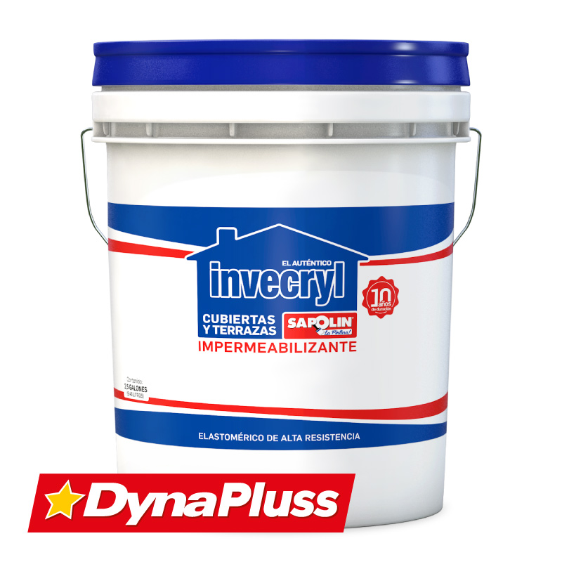 El impermeabilizante Invecryl es ideal para el recubrimiento con resinas acrílicas y aditivos especiales para repeler el agua. Con la aplicación del INVECRYL IMPERMEABILIZANTE SAPOLIN se logra evitar completamente el paso del agua a superficies susceptibles a las humedades, como terrazas, bajantes, tejados, entre otros. Tiene un excelente desempeño cuando es sometido a intemperie debido al uso de materias primas especiales para la exposición a rayos UV y a condiciones de humedad y temperatura. Debido a su alta flexibilidad, se puede usar en superficies que presenten expansión o contracción por los cambios de temperatura y hacer aplicación en superficies que presenten formas complejas como escalas, medias cañas, desagües, entre otros. Esta pintura está recomendada como recubrimiento impermeabilizante para superficies en concreto, mortero, tejas de arcilla y tablilla, también se puede usar en superficies de mampostería en general. No está indicado para usarse como impermeabilizante de humedades de nivel freático, tampoco en superficies que tengan tráfico pesado y/o constante o en aquellas en las cuales la adherencia se pueda ver afectada, como superficies de asfalto, losas selladas y pulidas sin tratamiento de preparación de superficie o baldosas esmaltadas.
