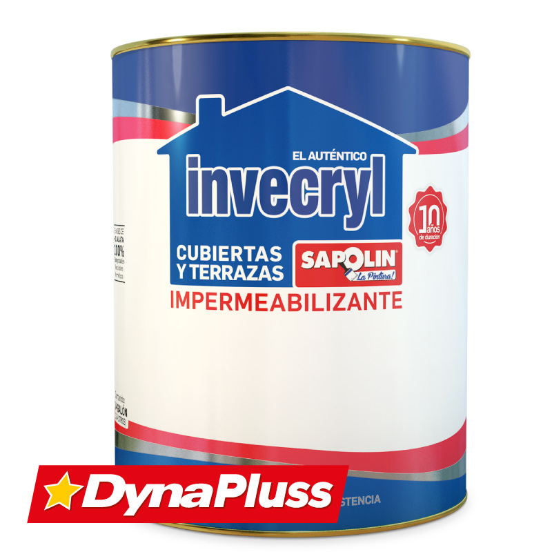 El impermeabilizante Invecryl es ideal para el recubrimiento con resinas acrílicas y aditivos especiales para repeler el agua. Con la aplicación del INVECRYL IMPERMEABILIZANTE SAPOLIN se logra evitar completamente el paso del agua a superficies susceptibles a las humedades, como terrazas, bajantes, tejados, entre otros. Tiene un excelente desempeño cuando es sometido a intemperie debido al uso de materias primas especiales para la exposición a rayos UV y a condiciones de humedad y temperatura. Debido a su alta flexibilidad, se puede usar en superficies que presenten expansión o contracción por los cambios de temperatura y hacer aplicación en superficies que presenten formas complejas como escalas, medias cañas, desagües, entre otros. Esta pintura está recomendada como recubrimiento impermeabilizante para superficies en concreto, mortero, tejas de arcilla y tablilla, también se puede usar en superficies de mampostería en general. No está indicado para usarse como impermeabilizante de humedades de nivel freático, tampoco en superficies que tengan tráfico pesado y/o constante o en aquellas en las cuales la adherencia se pueda ver afectada, como superficies de asfalto, losas selladas y pulidas sin tratamiento de preparación de superficie o baldosas esmaltadas.