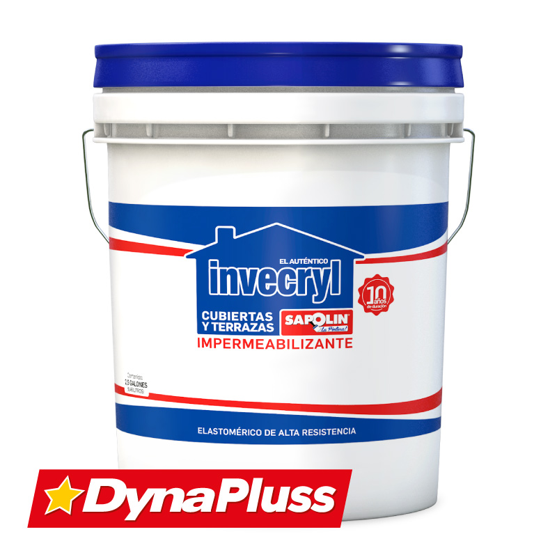 El impermeabilizante Invecryl es ideal para el recubrimiento con resinas acrílicas y aditivos especiales para repeler el agua. Con la aplicación del INVECRYL IMPERMEABILIZANTE SAPOLIN se logra evitar completamente el paso del agua a superficies susceptibles a las humedades, como terrazas, bajantes, tejados, entre otros. Tiene un excelente desempeño cuando es sometido a intemperie debido al uso de materias primas especiales para la exposición a rayos UV y a condiciones de humedad y temperatura. Debido a su alta flexibilidad, se puede usar en superficies que presenten expansión o contracción por los cambios de temperatura y hacer aplicación en superficies que presenten formas complejas como escalas, medias cañas, desagües, entre otros. Esta pintura está recomendada como recubrimiento impermeabilizante para superficies en concreto, mortero, tejas de arcilla y tablilla, también se puede usar en superficies de mampostería en general. No está indicado para usarse como impermeabilizante de humedades de nivel freático, tampoco en superficies que tengan tráfico pesado y/o constante o en aquellas en las cuales la adherencia se pueda ver afectada, como superficies de asfalto, losas selladas y pulidas sin tratamiento de preparación de superficie o baldosas esmaltadas.