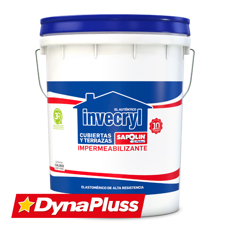 El impermeabilizante Invecryl es ideal para el recubrimiento con resinas acrílicas y aditivos especiales para repeler el agua. Con la aplicación del INVECRYL IMPERMEABILIZANTE SAPOLIN se logra evitar completamente el paso del agua a superficies susceptibles a las humedades, como terrazas, bajantes, tejados, entre otros. Tiene un excelente desempeño cuando es sometido a intemperie debido al uso de materias primas especiales para la exposición a rayos UV y a condiciones de humedad y temperatura. Debido a su alta flexibilidad, se puede usar en superficies que presenten expansión o contracción por los cambios de temperatura y hacer aplicación en superficies que presenten formas complejas como escalas, medias cañas, desagües, entre otros. Esta pintura está recomendada como recubrimiento impermeabilizante para superficies en concreto, mortero, tejas de arcilla y tablilla, también se puede usar en superficies de mampostería en general. No está indicado para usarse como impermeabilizante de humedades de nivel freático, tampoco en superficies que tengan tráfico pesado y/o constante o en aquellas en las cuales la adherencia se pueda ver afectada, como superficies de asfalto, losas selladas y pulidas sin tratamiento de preparación de superficie o baldosas esmaltadas.