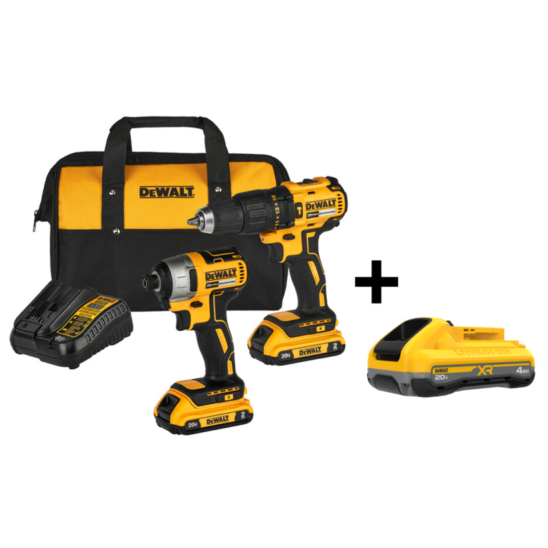 Super combo inalámbrico 20V de la nueva línea sin escobillas Dreamliner de Dewalt que contiene 1 Taladro Percutor De 1/2” DCD7781 + 1 Atornillador de impacto con encastre hexagonal de 1/4" y 170 Nm de torque DCF7871 + 2 baterías de 2Ah + 1 cargador + 1 bolso de lona. Adicionalmente, trae una batería de 4Ah con la nueva tecnología XR que permite que la carga dure más tiempo