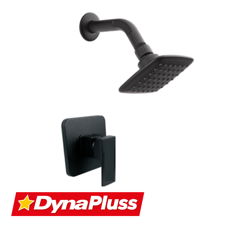 Conjunto de ducha monocontrol cuadrada niza negro mate. Regadera de 10cm cuadrada, cuerpo y monocontrol metalico, regadera plástica