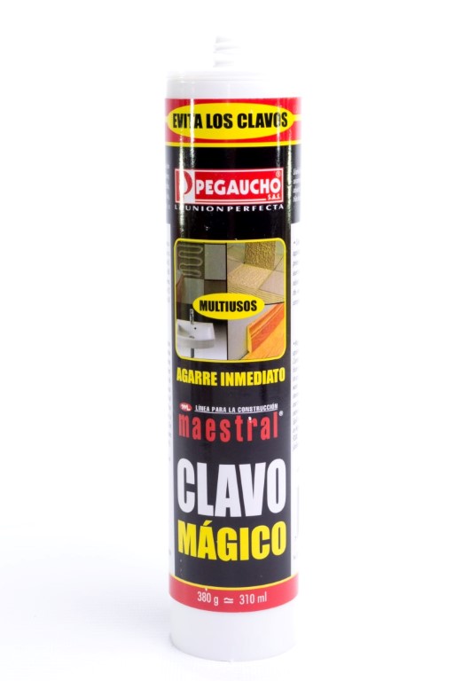 El clavo magico maestral es un adhesivo creado para la fijacion de adornos de icopor, madera y corcho. colocar ceramicas sueltas, alfombras y baldosas de vinilo. fijar objetos de construccion prefabricados, molduras de poliuretano, marcos, vidrios. pegar accesorios de bano y cocina, etc.