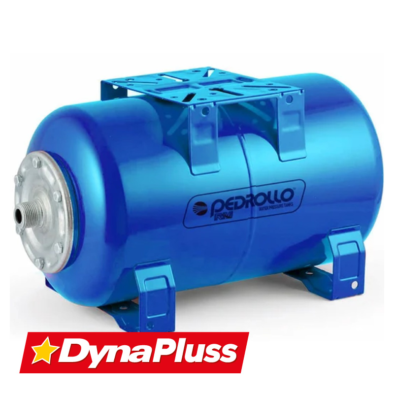 Tanque hidroneumático de membrana horizontal de 100 litros membrana, permite el almacenamiento de aire y agua para el correcto funcionamiento del equipo hidroneumático, membrana intercambiable en goma butílica especial para uso alimenticio, aprobada por la FDA temperatura máxima 99°c y presión máxima 116 psi.