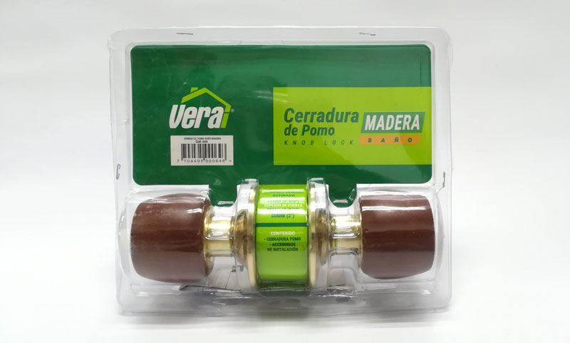 Cerradura Cilíndrica con Pomo de Madera Elegante y funcional, esta cerradura cilíndrica está diseñada para alcobas y baños, combinando la calidez del pomo de madera con la resistencia de sus piezas metálicas externas en acabado de latón pulido. Cuenta con un cilindro de latón (alcoba, entrada) para mayor seguridad y durabilidad. Su centro de instalación de 60mm (2-3/8") y roseta de 65mm permiten una fácil adaptación a puertas con un espesor de 35 a 50mm. Incluye 3 llaves de acero con acabado niquelado. Hasta 85000 mil ciclos, empaque blister