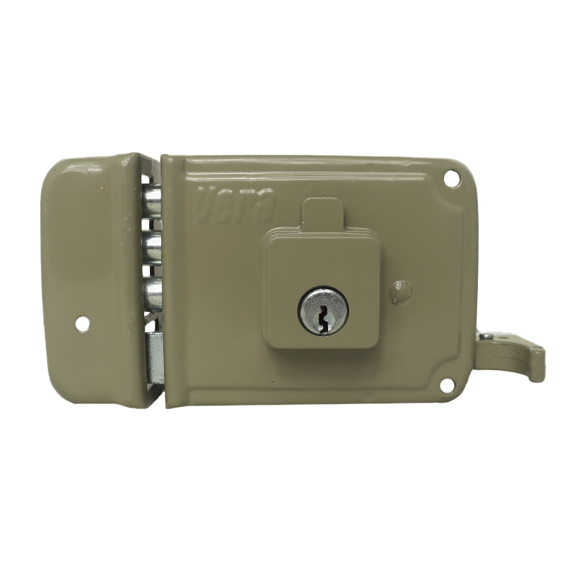 Cerradura de sobreponer de la serie VF6 con tres machos tipo bulón cilíndrico. Ideal para uso en puertas de entrada principal. Disponible para modo de apertura izquierdo. Bulones construidos en acero reforzado. Los machos se accionan totalmente con tres giros de la llave y en esta posición el picaporte queda en modo de bloqueo. Permite ser instalada con soldadura sobre cuerpos de lámina metálica. Acabado de color beige, centro de instalación de 50 mm. Cilindro de 5 pines. Para Determinar el Lado de la Puerta, Deberás Pararte Frente al Exterior. Si las Bisagras Están en el Lado Derecho, La Puerta es Derecha y si las Bisagras Están Instaladas del Lado izquierdo, La Puerta es Izquierda.