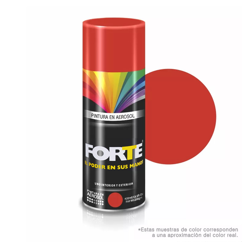 Pintura en aerosol multipropósito de acabado brillante, ideal para aplicar en diferentes superficies como madera, metal, cerámica o concreto. Fácil aplicación y rápido secado. Rendimiento aproximado de 1m2 por envase. Alta adherencia y cubrimiento. Presentación de 400 ML. Referencia 8845 Pinte.