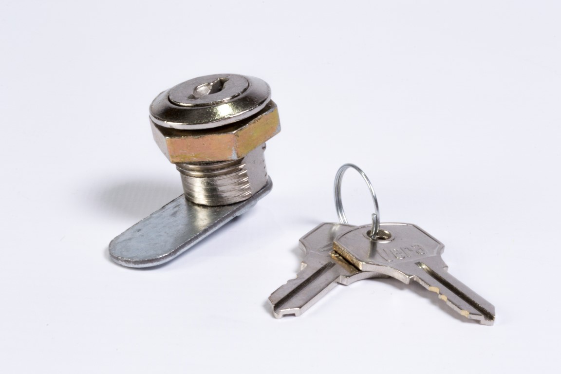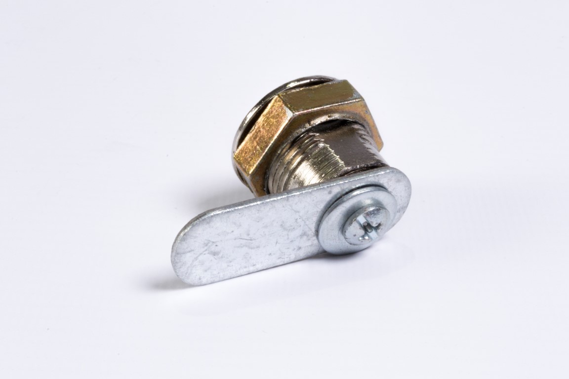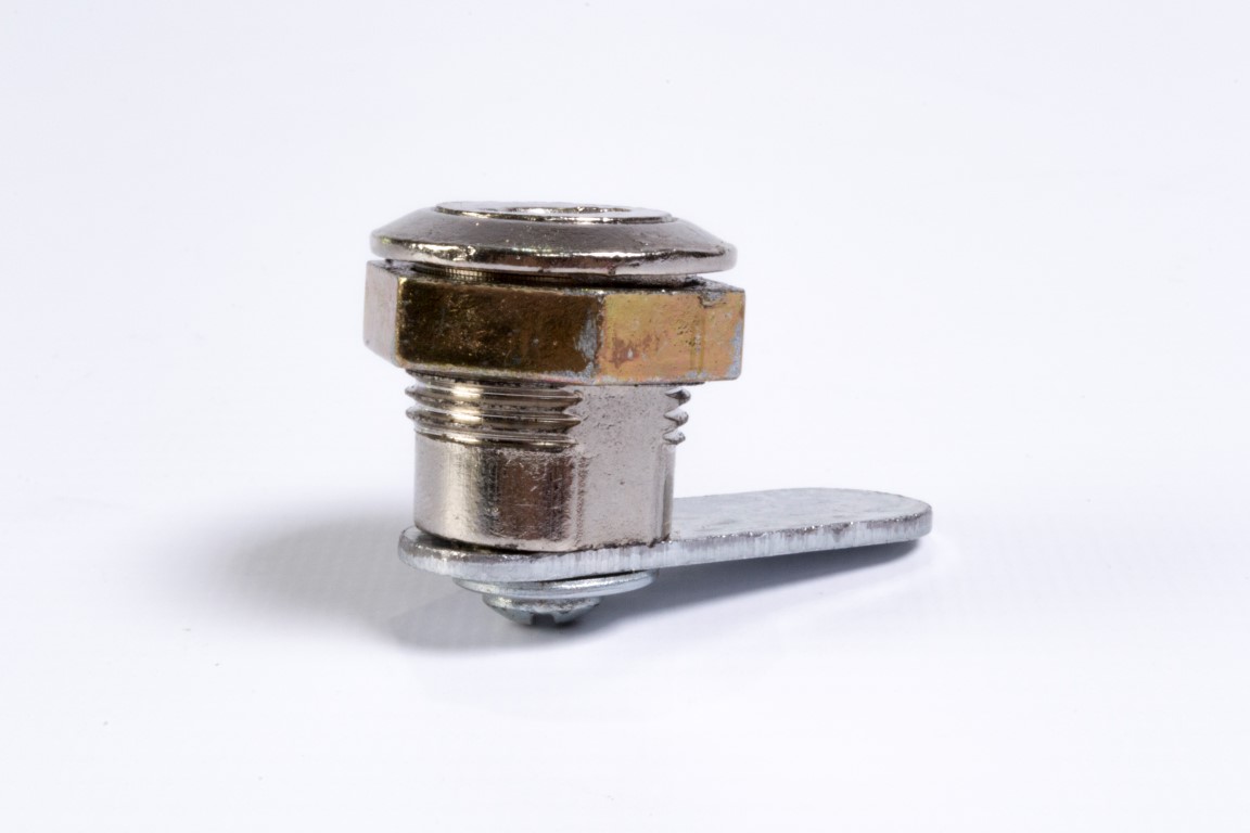 Cerradura para muebles modelo 1555, con acabado níquel brillante. Diseñada para gabinetes, guanteras, vitrinas, muebles y escritorios, compatible con puertas de ala corredizas. Cilindro de guardas en zamak para mayor seguridad. Incluye 2 llaves simétricas con protector plástico. Fabricada en lámina de acero para alta resistencia. mecanismo de giro de una vuelta.