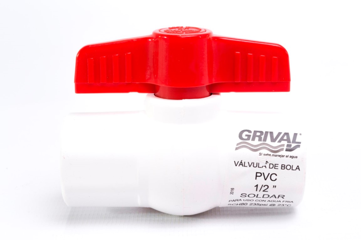 * Fabricación en pvc*válvula de 1/2 plg* de soldar*presión de trabajo manométrica máxima del agua 1620 kpa (235 psi).* de 4ºc a 27ºc (40ºf a 81ºf)