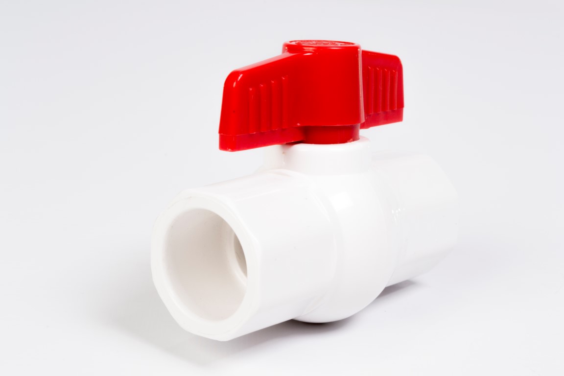 Válvula de bola PVC que no contamina el agua. Con soporte de presiones de hasta 235 psi.