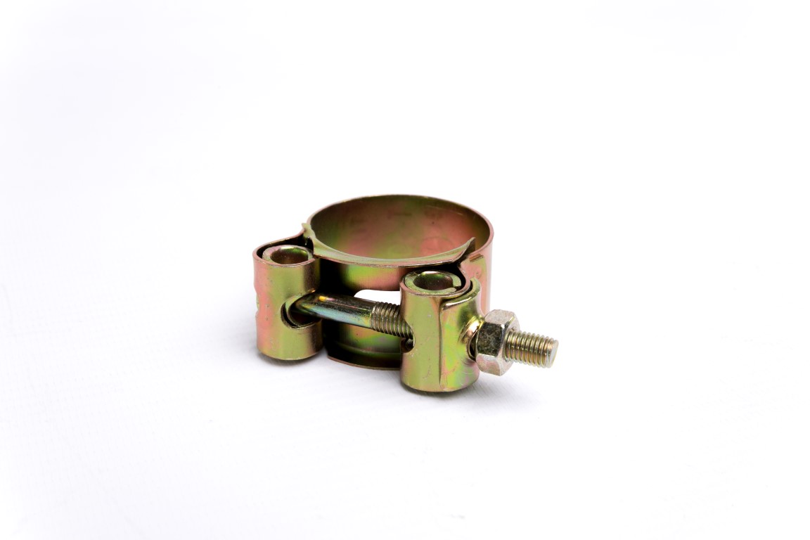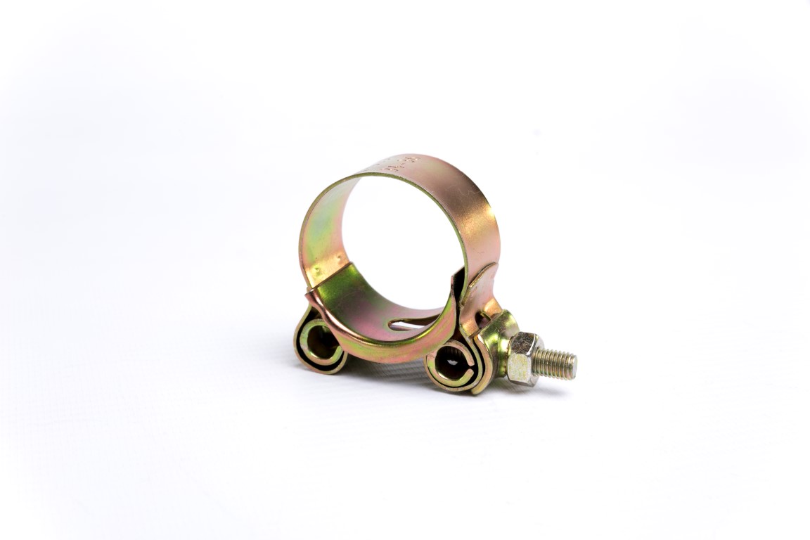 Abrazadera industrial en acero al carbon con arandela reforzada, soldadura anti desgarre y fleje de alta resistencia con proteccion de zinc