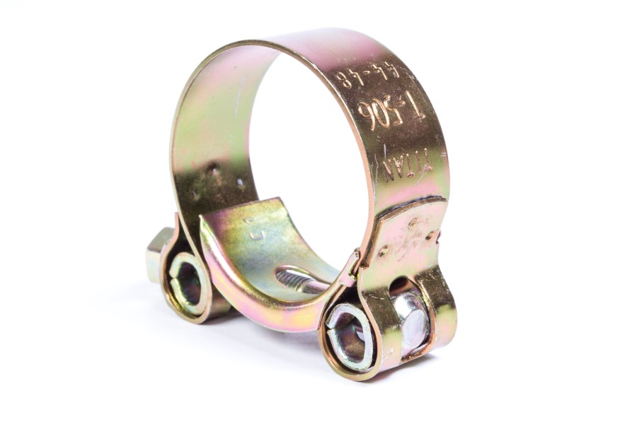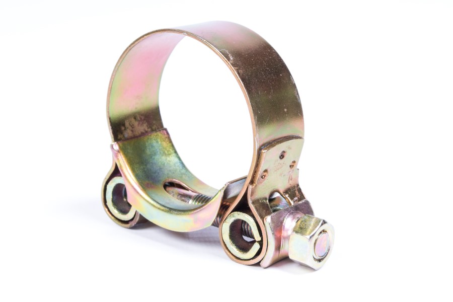 Abrazadera industrial en acero al carbon con aranedla reforzada, soldadura anti desgarre y fleje de alta resistencia con proteccion de zinc