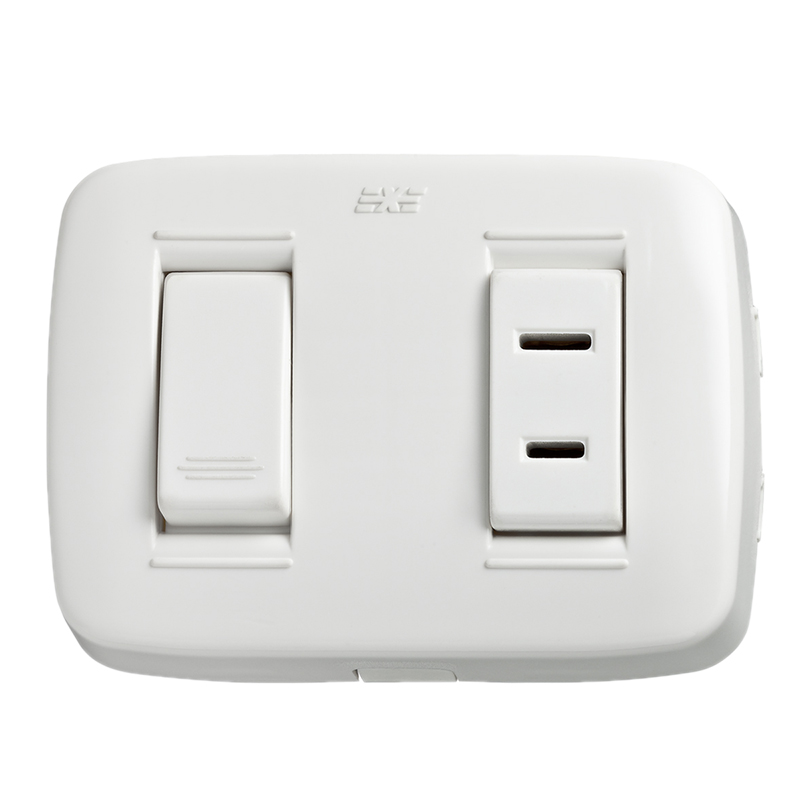 Toma Polo Tierra + Interruptor De Incrustar Sencillo Premium White - ETI38