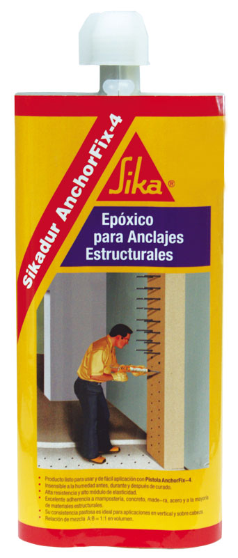 Sikadur Anchorfix-4 es un adhesivo de dos componentes de gran adherencia y resistencia mecánica para enclajes estructurales, se aplica con pistola de calafateo doble (Pistola AnchorFix - 4/3001)