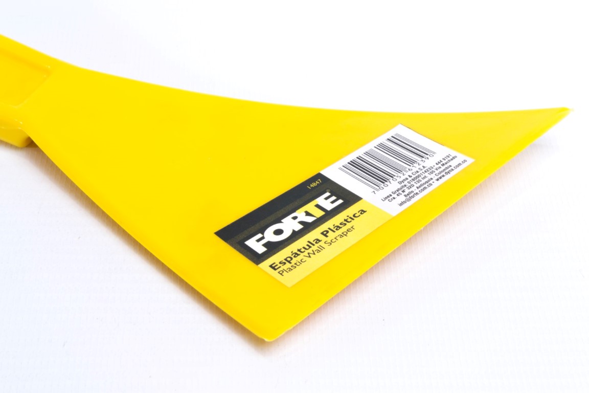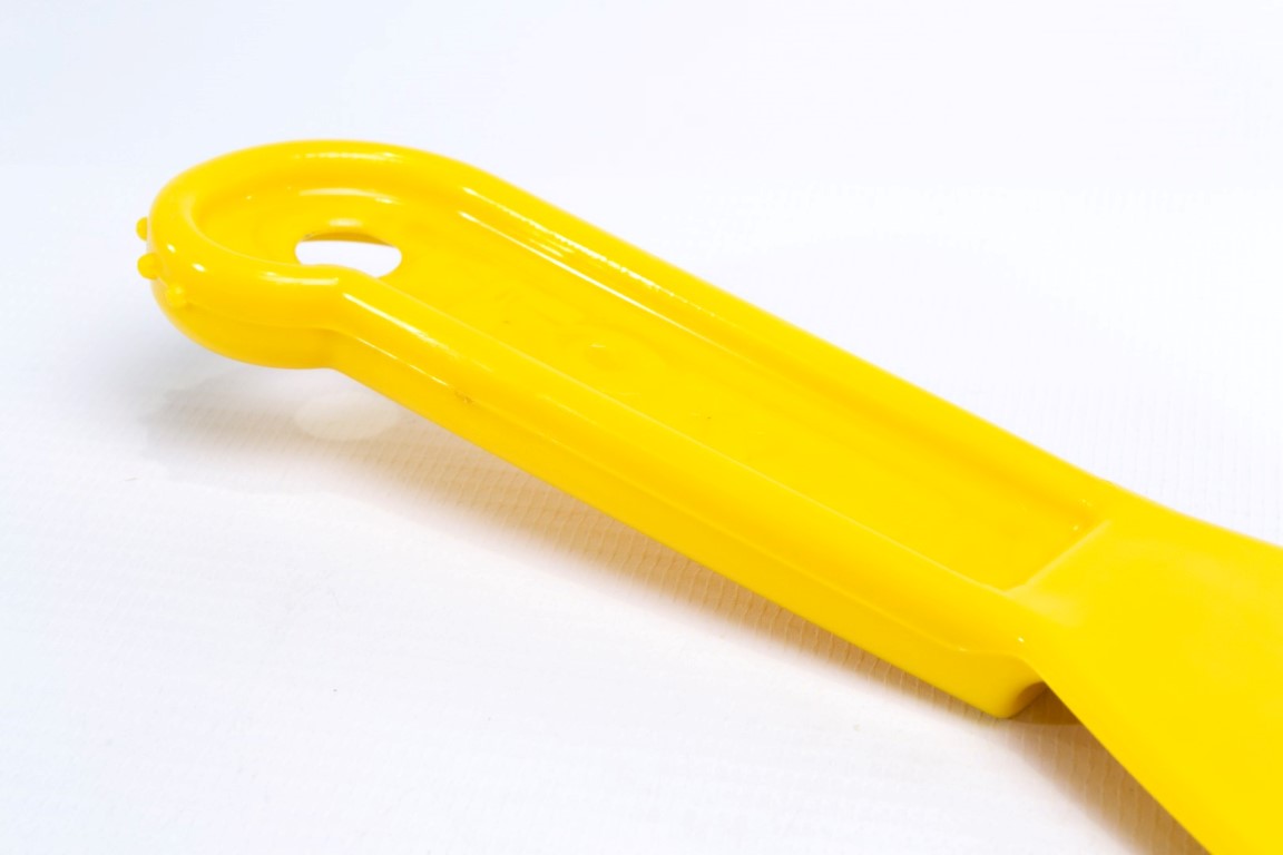 Resistente al ataque químico. No se ve afectado por hongos ni bacterias. Material: ABS Resistencia eléctrica. Dientes en la punta del mango que sirven como martillo para remover partículas irregulares. Utilizada en el sector de la construcción para remover residuos de pintura, cemento, entre otros. También se usa para la manipulación de alimentos.