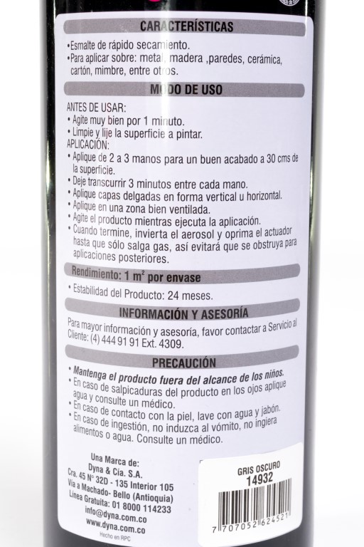 Pintura en aerosol multipropósito de acabado brillante, ideal para aplicar en diferentes superficies como madera, metal, cerámica o concreto. Fácil aplicación y rápido secado. Rendimiento aproximado de 1m2 por envase. Alta adherencia y cubrimiento. Presentación de 400 ML. Referencia 14932 Pinte.