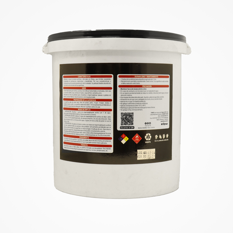 Impermeabilizante acrílico color gris, de fácil aplicación y listo para usar. Alta adherencia y durabilidad, resistente a la intemperie y a los rayos UV. Es un producto ecológico a base de agua. Para usarse en techos y azoteas monolíticas horizontales e inclinadas, bien sea en concreto, ladrillo, losas, techos en madera, tejas de fibro-cemento y zinc. Reforzado con tela de poliéster para rehabilitar e impermeabilizar ranuras o grietas en techos, canoas metálicas, tejas de asbesto o lámina galvanizada. Presentación de 1 de galón. Referencia IMPD312 de Pinte.