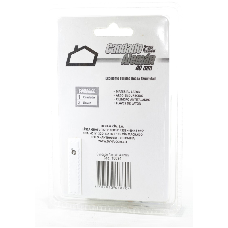 Candado tipo Aleman de cuerpo macizo en latón, diseñado para aplicaciones residenciales y comerciales. Cuenta con cilindro de latón antitaladro y sistema de retención de llave, evitando su extracción mientras el candado está abierto. Su arco de acero templado y endurecido, junto con el doble bloqueo, proporciona mayor seguridad. Equipado con pasadores de latón y resortes de acero inoxidable, lo que garantiza un alto desempeño incluso en ambientes agresivos. Incluye dos llaves en latón.