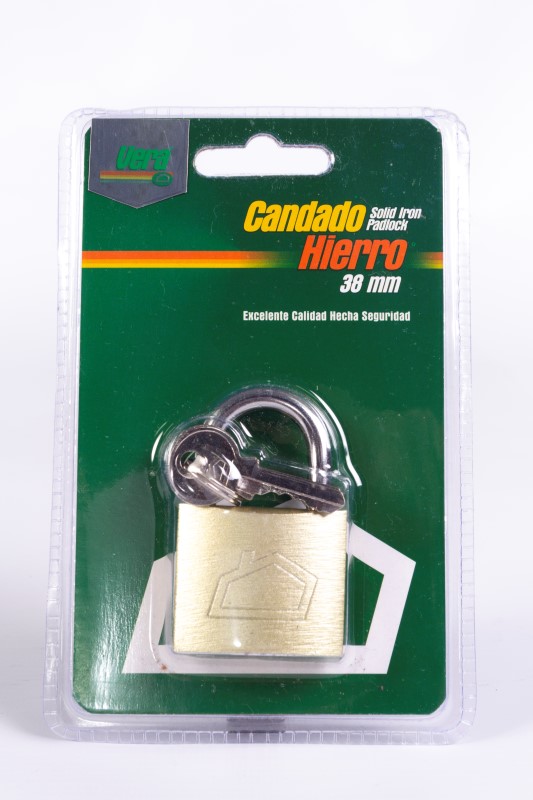 Este candado plano está fabricado en hierro, con un arco estándar de acero endurecido y un acabado en Laton. Cilindro y pines de laton. Es ideal para uso general en objetos que requieren una seguridad básica. Incluye tres llaves, lo que facilita su uso y reemplazo. Su diseño sencillo y práctico lo convierte en una opción económica y funcional para proteger pertenencias en entornos domésticos o comerciales