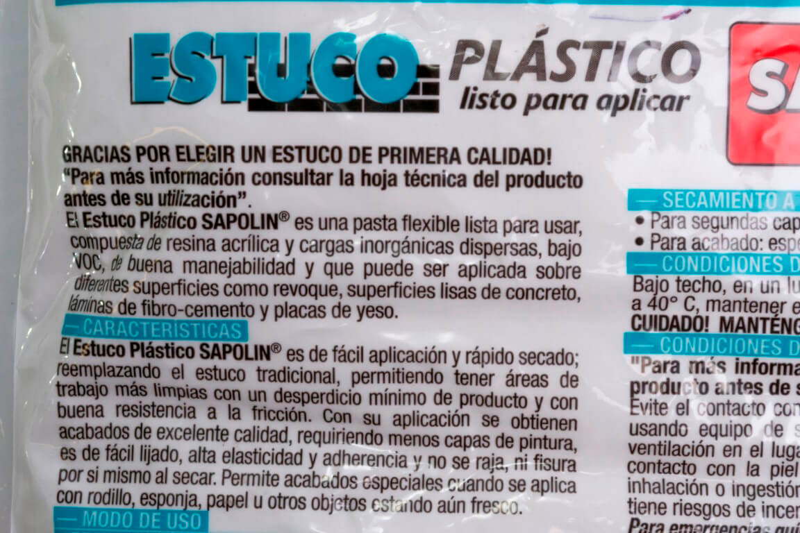 El estuco plastico sapolin es de facil aplicacion y rapido secado reemplazando el estuco tradicional, permitiendo tener areas de trabajo mas limpias con un desperdicio minimo de producto y con buena resistencia a la friccion. con su aplicacion se obtienen acabados de excelente calidad, requiriendo menos manos de pintura.