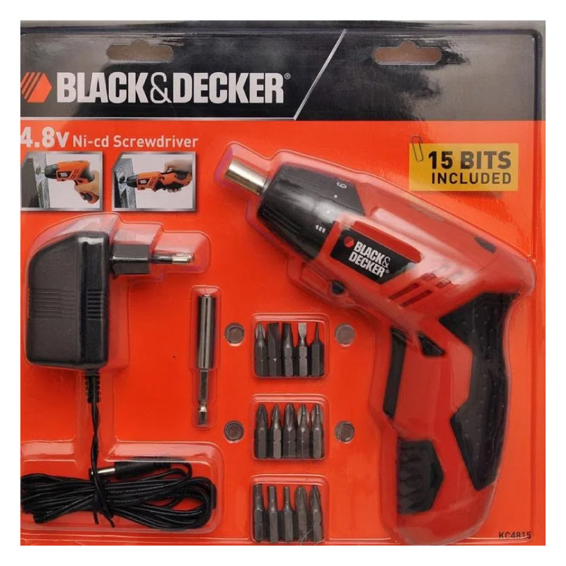 Voltaje: 4.8V - Batería: Ni-Cd - Mango de Doble Angulo con Recubrimiento de Goma - Rotación Derecha/Izquierda - 8 Posiciones de Torque + 1 Posición para Taladro Con Luz LED - Con Indicador LED de Carga de Batería - Velocidad sin Carga 200 RPM - Torque Máximo: 3.0 Nm (26 lb-pul) - iNCLUYE: 15 Puntas Cr-V + 1pc Cargador(3-5Hours) + 1pc Mandril Hex con Imán - En Blister
