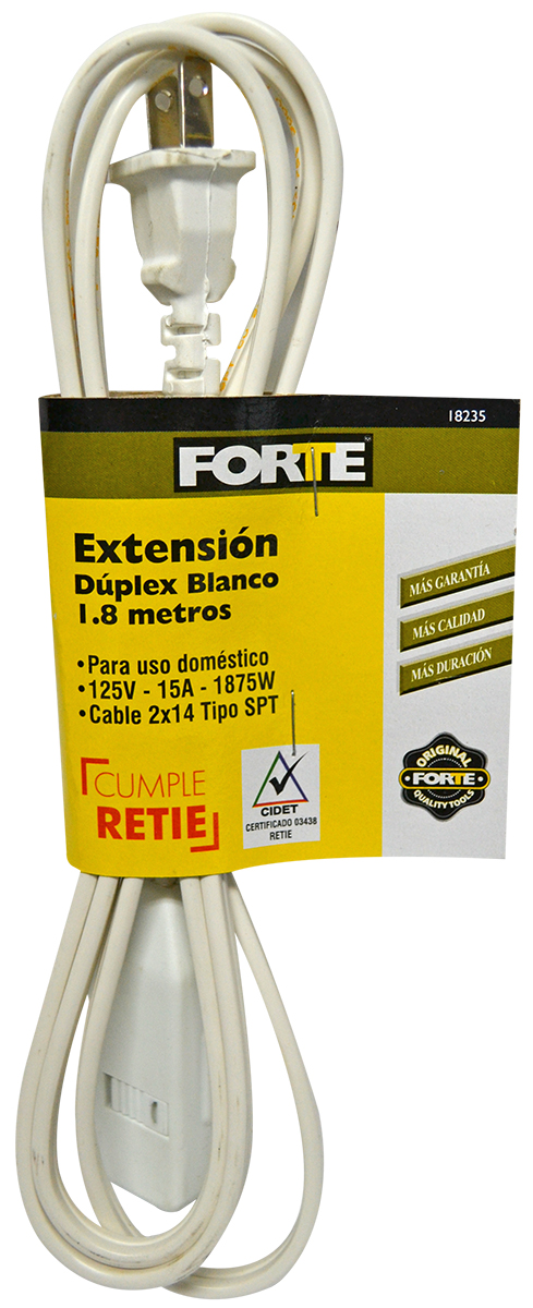 Extensión eléctrica cable dúplex 14 Macho Bifilar 1.8mt 75° blanca