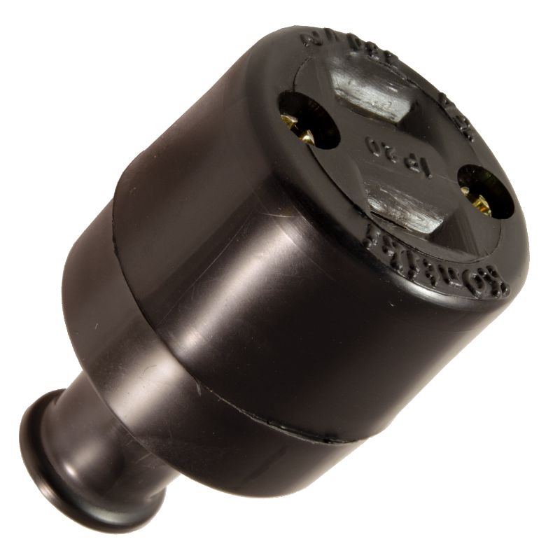 Aislantes Eléctricos de CauchoContactos de Cobre dobleTensión de uso: Máximo 150 VoltiosCapacidad de Corriente: 15 AmperiosUsos: En aparatos eléctricos del hogarUnidad de Empaque: Caja 720 unidadesSub-Empaque: Bolsa 12 unidades