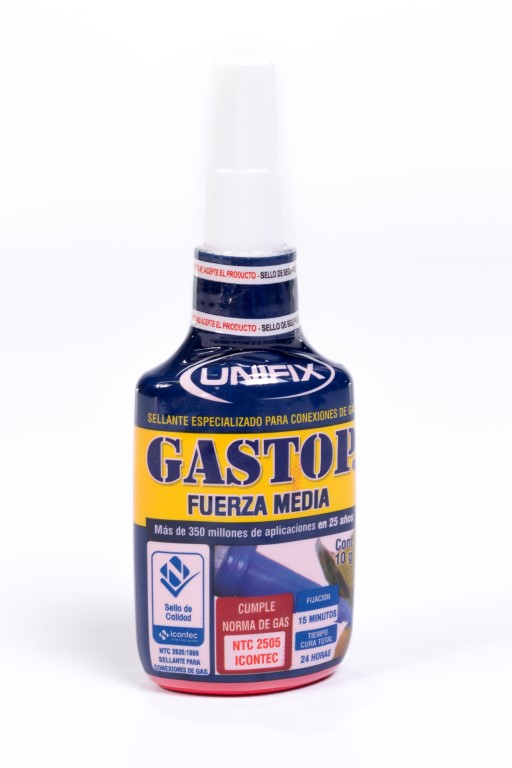 Diseñado especialmente para el montaje de uniones roscadas en la instalación de tubería para gas. Por su fuerza media se debe usar en piezas que requieran mantenimiento o donde se prevé un desmontaje a corto o mediano plazo. Polimeriza (seca, cura, endurece) en ausencia de aire y al estar en contacto entre dos superficies metálicas. o Evita la oxidación de las superficies. o Cubre todas las necesidades de fijación y sellado de tuberías.