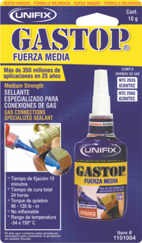 Sellante para union roscada Gastop fuerza media 10g 1101004 Unifix