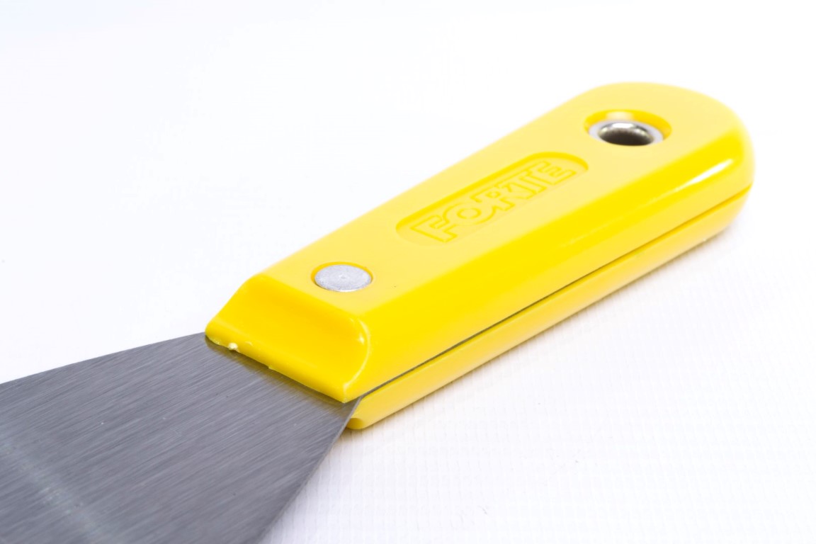 Fabricadas en acero al carbono, templado. Mayor durabilidad. Resistente a la flexión. Se utiliza principalmente para trabajos de pintura como: relleno de grietas y agujeros, preparación de mezclas y raspado de superficies. También se utiliza para trabajos en fontanería y albañilería, se recomienda no ser usadas en manipulación de alimentos. Mango Plástico.