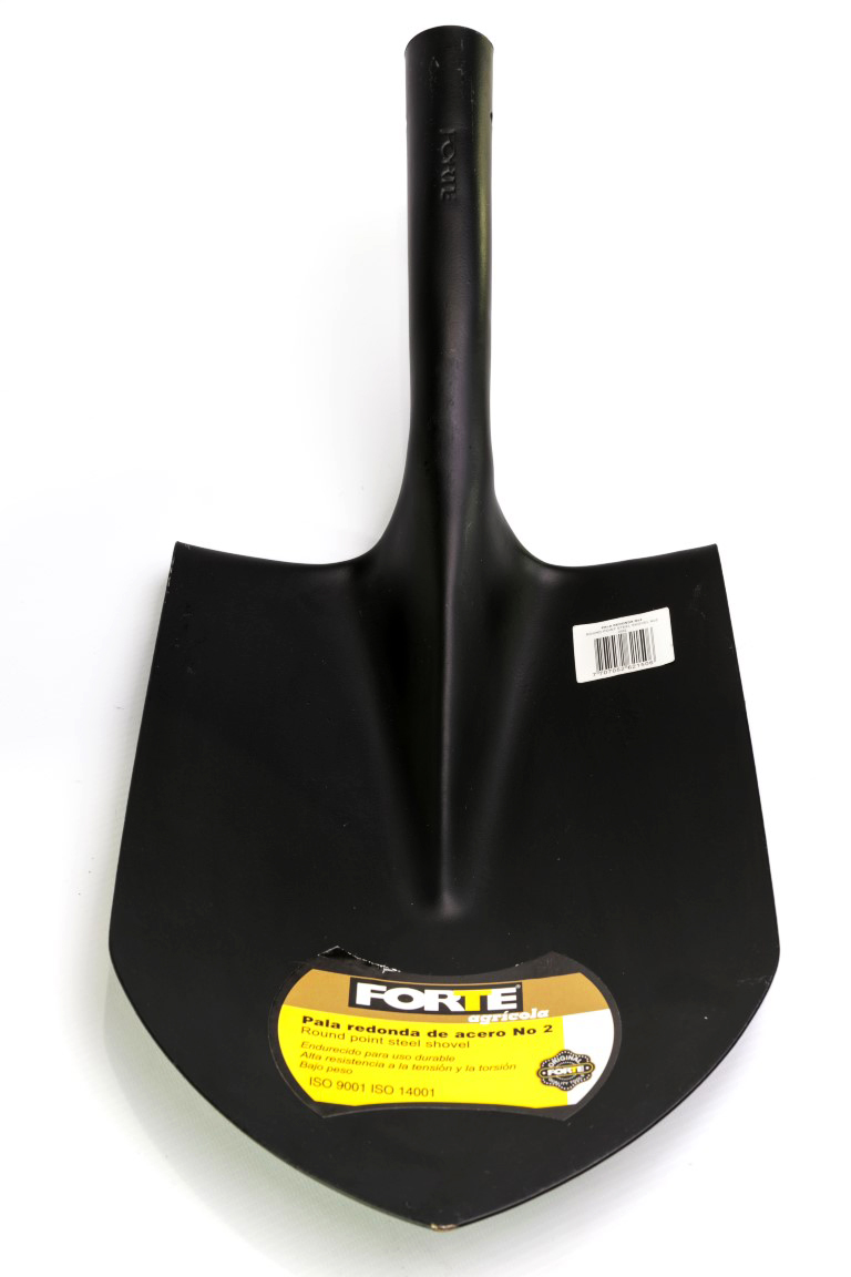 Fabricadas en acero al manganeso. Dureza: por templado. Flexible y resistente. Pestaña superior para mejor operación y seguridad. Pala Redonda N° 2 Peso 2.1/2 Libras. Iva del 5%.