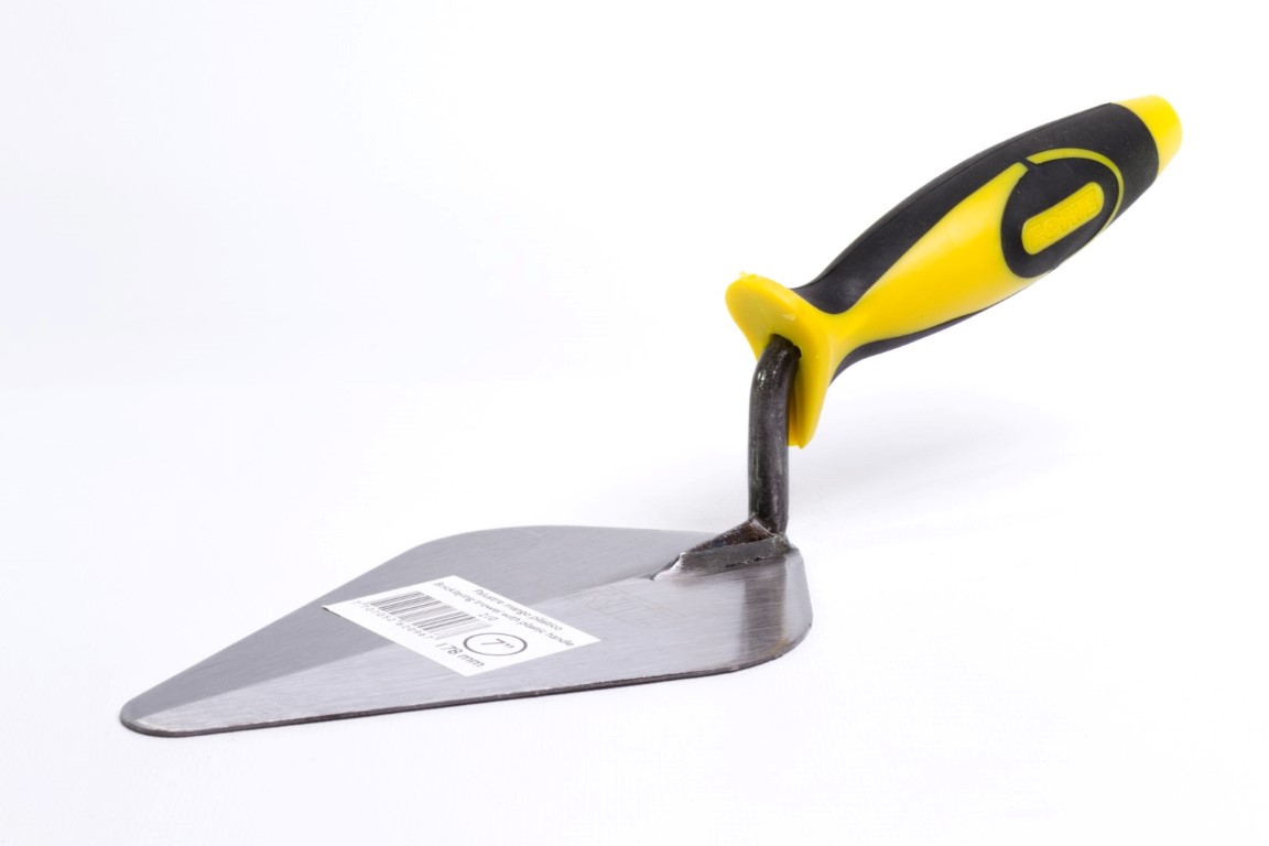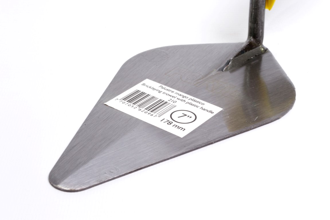 Cuerpo en Acero al Carbono, templado. Mayor durabilidad y resistencia. Mango soldado. Soldadura verificada con rayos X. Útil para trabajos de albañilería principalmente, para mezclar, recoger, transportar y extender masillas, revoques y pinturas. Mango Plástico ergonómico.