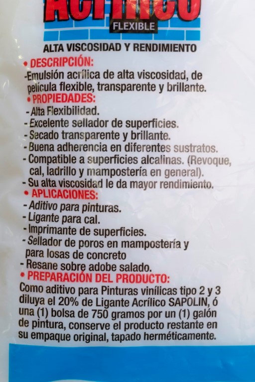 El ligante acrilico es una emulsion acrilica de alta viscosidad de muy buena flexibilidad, por lo cual es utilizada como sellador de superficies y como ligante en algunas aplicaciones arquitectonicas.